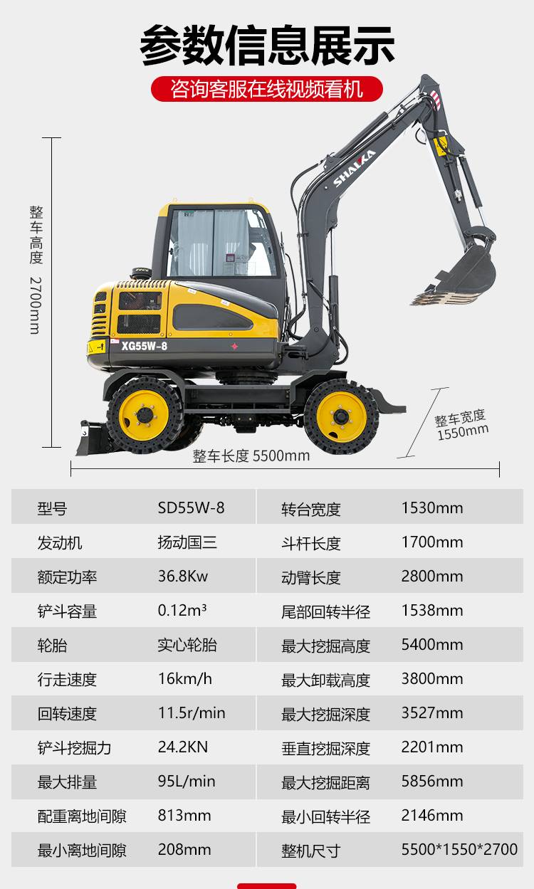小型55轮式挖掘机生产厂家 挖深3.5米6吨轮挖 品牌发动机