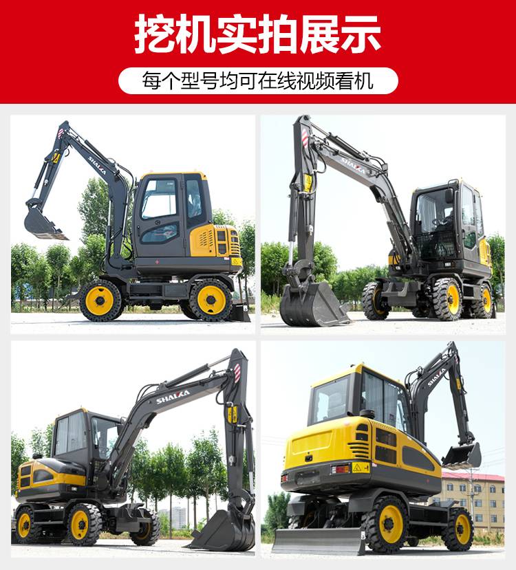 100挖机轮式挖掘机工程施工挖机挖沟钩机工地挖土机