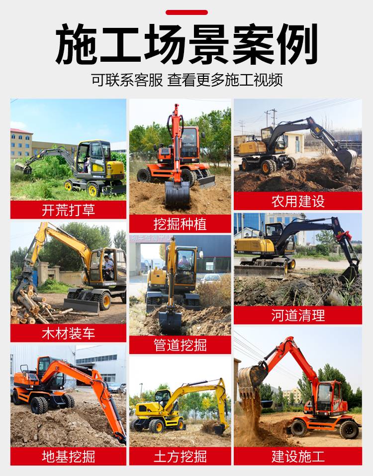 80小型轮式挖掘机 抓棉花用的8吨微型小钩机 复杂地形农业轮挖