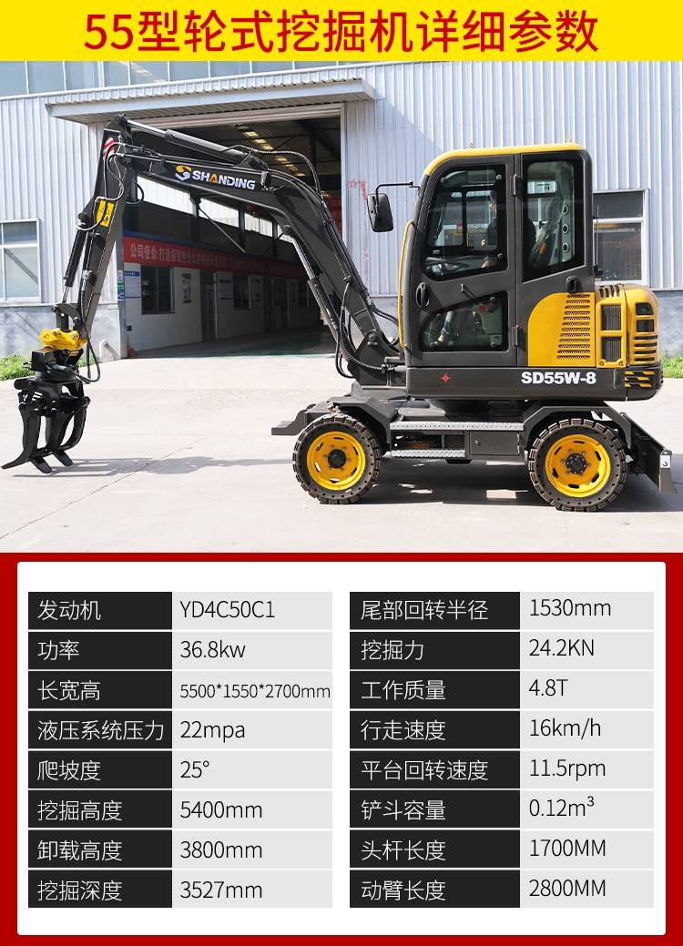 小型55轮式挖掘机生产厂家 挖深3.5米6吨轮挖 品牌发动机